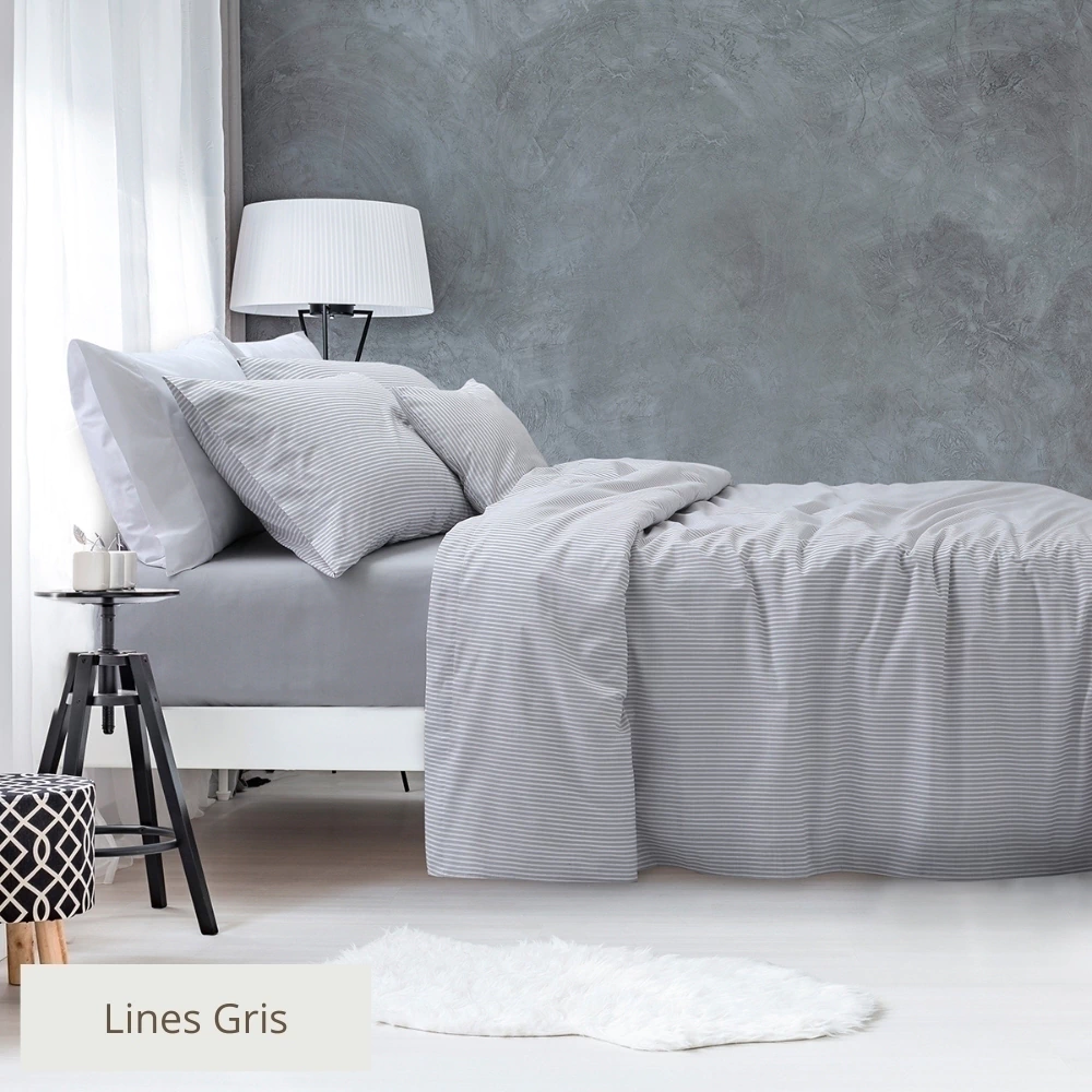Transforma tu dormitorio en un oasis de confort y estilo con el Juego de Sábanas PALETTE LINEAS. Confeccionadas en percal de algodón de 180 hilos, estas sábanas aseguran una suavidad excepcional y una durabilidad que te acompañará noche tras noche.